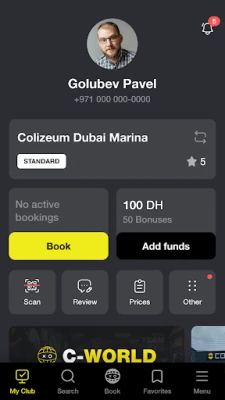 The Cyberium application will help you replenish your account balance. Choose the hall and the rate you like. After that, you just have to come to the club and have fun.