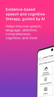 Constant Therapy is an award-winning, science-based cognitive, language, and speech therapy app designed to help people recovering from stroke, traumatic brain injury (TBI), or people living with aphasia, apraxia, dementia, and other neurological conditions. Join a community of 700,000+ users, completing 300 million+ evidence-based therapy activities using Constant Therapy. Get unlimited therapy, guided by AI, that allows you to engage in therapy exercises when and where you want.