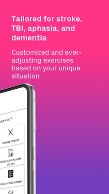 • Whether you’re recovering from a stroke, TBI, aphasia, apraxia, dementia, or other neurological conditions, you choose your speech and cognitive therapy goals, and the app delivers customized & ever-adjusting exercises based on your unique needs