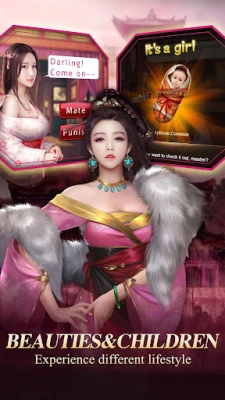 Recruit talent Retainers. Deal with daily government affairs. Start a romantic relationship with Beauties. Cultivate Offspring. Prepare for war with Military strategy. End up on the throne.